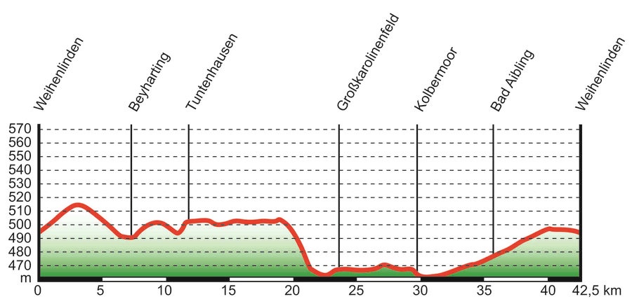 Lange Radltour wahlweise von Weihenlinden, Volksfestplatz Bad Aibling oder Bahnhof  Bad Aibling beginnend. Die Tour führt an den Wallfahrtskirchen Weihenlinden und Tuntenhausen vorbei. Weiteres Highlight (Abstecher) ist das Schloss Maxlrain und dessen Brauerei. Viele tolle Ausblicke ins Gebirge.