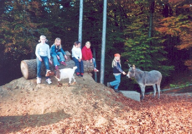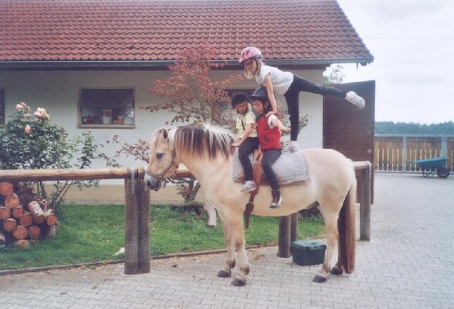 Für Kinder ab 6 Jahren: familiäre Betreuung mit Wandern, Reiten, Tiere versorgen, Zelten, Lagerfeuer, Schlafen im Strohbett. Gehege: Esel, Ziegen, Kamerunschafe, Minischweine, Lamas. Es werden Geburtstagsfeiern organisiert. Die Pferde sind brave Freizeitpferde und werden artgerecht gehalten.