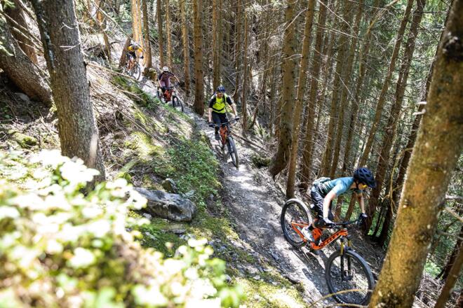 Einige Meter nach der Abzweigung des Flow Links beginnt dieser naturbelassene, schmale Single Trail, und schlängelt sich durch ein paar Waldpassagen. Am Schluss mündet er in die Steinberg Line by FOX.