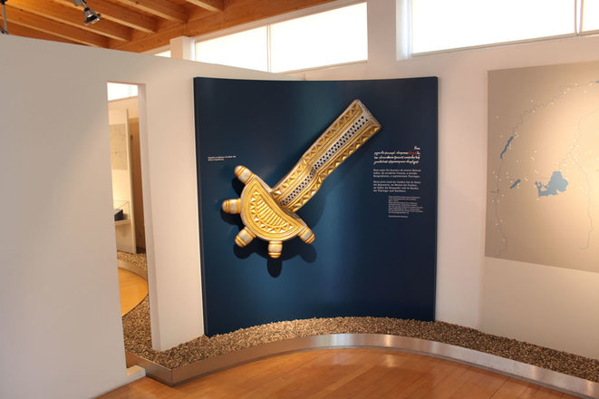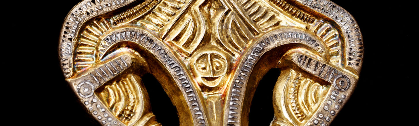 Ein lächelndes Gesicht auf einem prächtigen Gewandverschluss des 6. Jahrhunderts n. Chr. begrüßt die Besucher des neu gestalteten Baiuvarenmuseums in Waging. Er befindet sich auf einer sog. „Bügelfibel“, einem Gewandverschluss aus vergoldetem Silber, den sich nur die wohlhabendsten Damen des 6. Jahrhunderts leisten konnten. Auf diesen Schmuckstücken konnten die Goldschmiede ihren großen Einfallsreichtum erweisen - neben dem lächelnden Gesicht kann man auf der Fibel noch zahlreiche weitere Details erkennen: ein zweites Augenpaar, einen großen Tierkopf, Adlerschnäbel, gerippte Schlangenkörper, weit aufgerissene Tiermäuler. Die Bedeutung des Dargestellten muss rätselhaft bleiben, da uns aus dieser Zeit kaum schriftliche Quellen vorliegen. Wahrscheinlich handelt es sich bei diesem „Smiley“ aber um eine Christusdarstellung, ein Christus, der freundlich inmitten des Chaos – versinnbildlicht durch die wilde Tierwelt- lächelt. Spätestens ab der Mitte des 6. Jahrhunderts waren die Baiuvaren nämlich offiziell christlich-katholisch. Auch wenn wir nicht wissen, wie der Glaube wirklich praktiziert wurde, zeugen Darstellungen wie auf diesem Schmuckstück aber doch von der Existenz des Christentums.