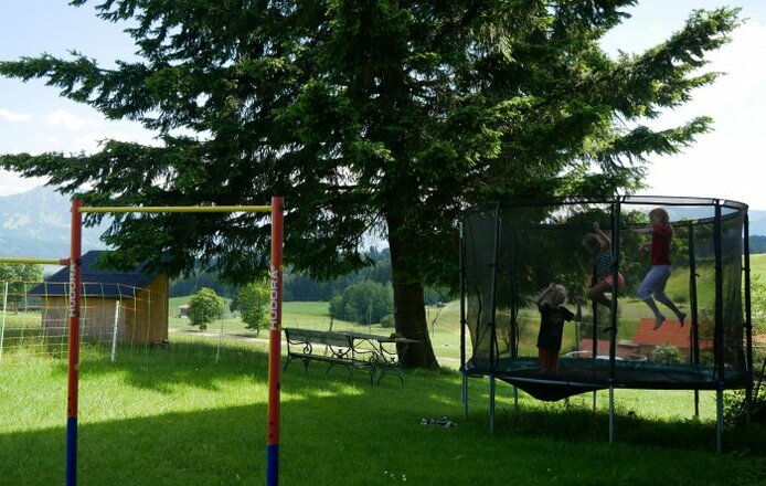 Ein herzliches Grüß Gott! Urlaub zum Durchatmen und Erholen. Unser kinderfreundlicher Berghof, in 1000 m Höhe und ruhiger Südhanglage, liegt inmitten eines Landschaftschutzgebietes. Umgeben von grünen Wiesen können Sie den Ausblick auf die Alpen genießen. Wir selber haben kein Milchvieh mehr und haben auch keine Kühe, jedoch sind rings um unser Haus noch Kühe, die dem Nachbarhof gehören. Dennoch freuen sich bei uns der Hund, die Katze und Hasen auf liebe Besucher und streichelnde Hände. Zur Entspannung lädt unsere Spiel- und Liegewiese mit vielen Kinderspielgeräten ein. Vom Hof aus haben Sie einen herrlichen Blick auf die gesamte Alpenkette. Wir freuen uns auf Ihren Besuch! Ihre Familie Hagspiel
