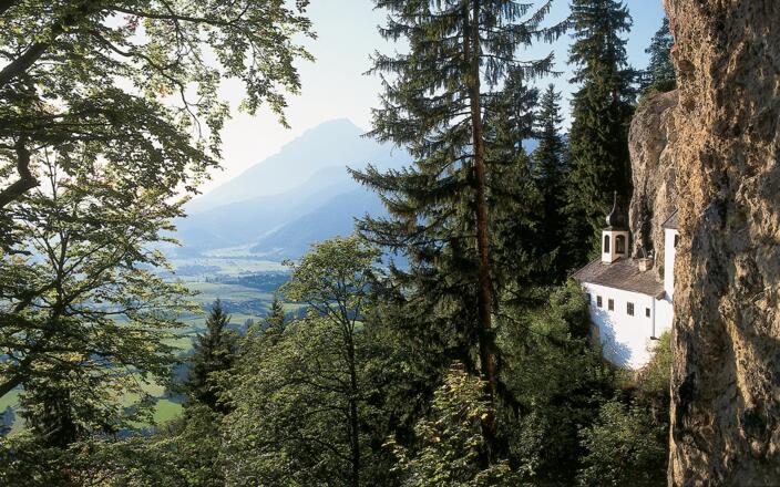 Die rund 350 Jahre alte Einsiedelei auf dem Palfen ist eine der letzten, durchgehend bewohnten Eremitagen Europas. Hier lassen Urlauber und Einheimische gleichermaßen gerne die Seele baumeln. Von der Haltestelle Saalfelden Hubertus sind es rund 40 Minuten Fußmarsch bis zur Einsiedelei.