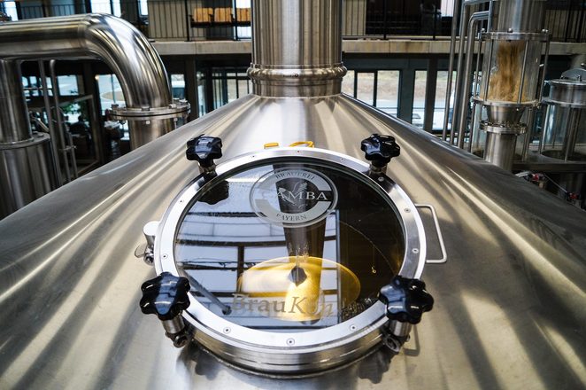Gleich neben dem Tresen befindet sich die Bäckerei der Camba. Auch die Bäckerei ist offen gebaut und bietet Einblicke in das Bäckerei-Handwerk. Es wird ausschließlich mit natürli-chen Rohstoffen von regionalen Partnern gebacken, die Teige bekommen ausreichend Zeit zum Ruhen und Rasten. Als Hausbrot gibt es die „Brauerkruste“ an, ein Natursauerteig ge-führtes Dinkelbrot, verfeinert mit Camba Dark Side. Bei Verkostungen wird passendes Brot zu den verschiedenen Bieren gereicht.