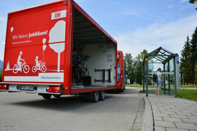 Die Chiemseeringlinie ist ein Rad- und Wanderbus, der im Sommer den Chiemsee mehrmals täglich umrundet. Ein Anhänger ermöglicht die Fahrradmitnahme.