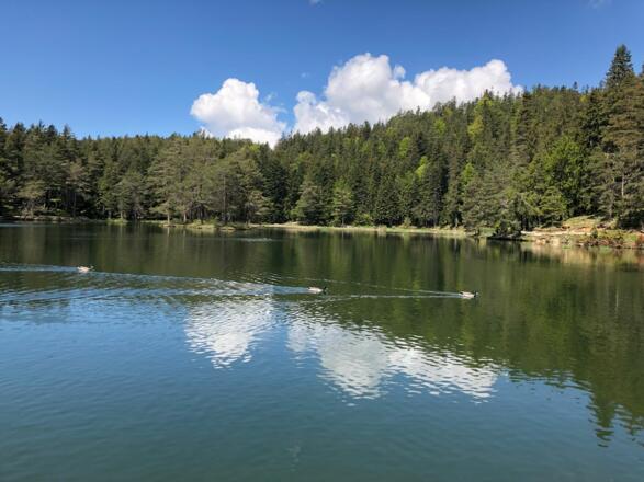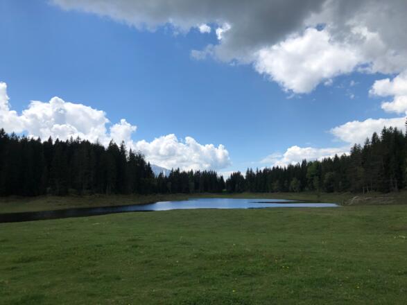 Es geht wieder den Weg zurück mit einer tollen Abfahrt in Richtung Lottensee, weiter vorbei am Golfplatz und bei der Wildmoosalm wieder auf den Weg in Richtung Katzenkopf/Hochmoos einschlagen. Eine Einkehr auf der Hochmoosalm lohnt sich immer. Über die Rodelbahn geht es dann wieder Retout zum Ausgangspunkt.