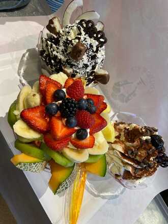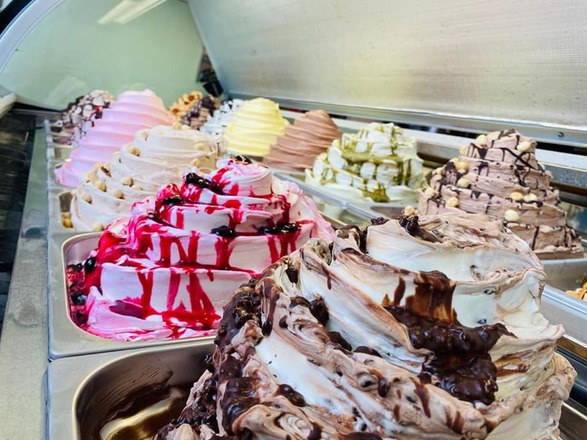 Direkt am Traunsteiner Stadtplatz am Lindlbrunnen befindet sich das Eiscafe Cortina und bietet ihre Eiskreationen an.