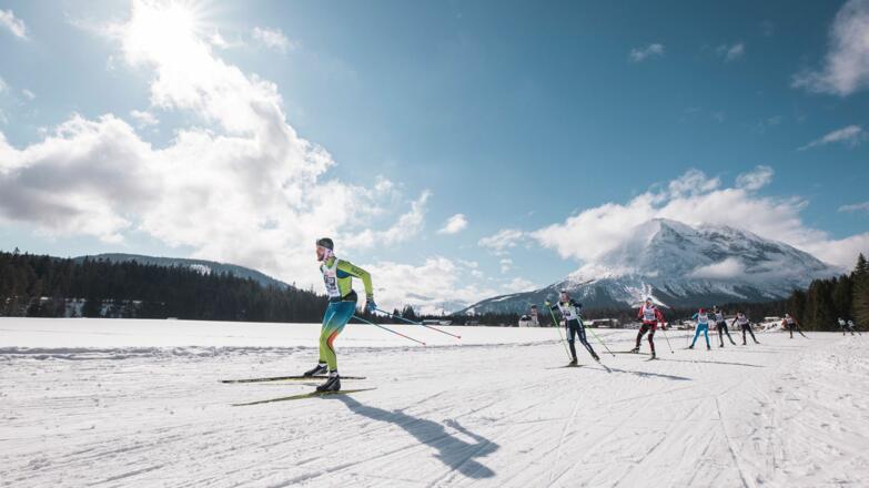 Die 22 km lange Skatingroute durch das sonnige Leutaschtal.