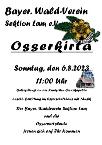 11:00 Uhr Berggottesdient bei der Künischen Grenzkapelleanschließend Bewirtung und musikalische Unterhaltung mit Harmonika Franz und seinen Freunden im Osser-Schutzhaus Veranstalter: Bayerischer Waldverein Sektion Lam e.V. & Osserwirtsleute
