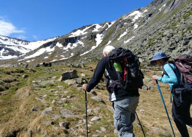 und überschreiten dabei den Krimmler Tauern und wandern bis Kasern in Südtirol/Alto Adige.
