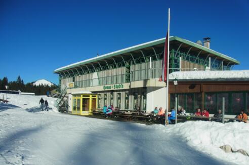 Auf der Sonnenterrasse der Gosaustub´n wird ab 11 Uhr fleißig musiziert.