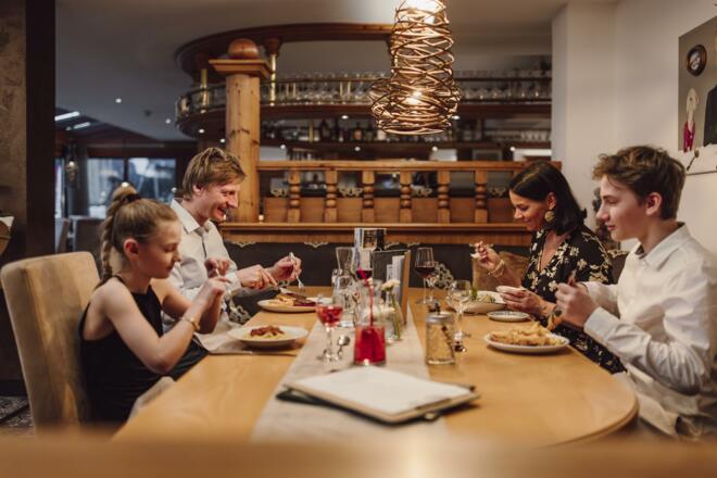 Erlebt einen schönen Abend in einer lustigen, fröhlichen Runde beim geselligen Speisen an der großen Tafel mit Weinbegleitung und gemeinsamen Weind´ln am Logenplatz von Mühlbach.