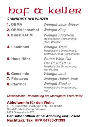Nur an diesem einen Tag im Jahr werden die in Privatbesitz stehenden, sehenswerten Innenhöfe und Keller für die Besucher geöffnet und bieten so den idealen Rahmen für die Verkostung von edlen Weinen aus der Weststeiermark an.