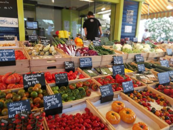Der vor über 70 Jahren eröffnete Südbahnhofmarkt bietet neben frischem, regionalem Obst und Gemüse auch Gehandeltes und Importiertes in höchster Qualität an. Dem internationalen sowie dem regionalen Gaumen wird hier alles geboten. Die charmanten Marktverkaufsgebäude – im Fachjargon "Kioske" genannt – können bis zu 4 unterschiedliche Anbieter beherbergen.