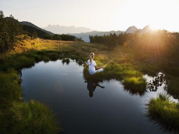 Asanas auf der Almwiese - Yoga in der freien Natur ist ein ganz besonderes Erlebnis. Beim Yoga am Berg in Zauchensee rollen Sie ihre Yogamatte am Ufer des glitzernden Seekarsees aus und genießen während den Übungen die Kraft der Berge.