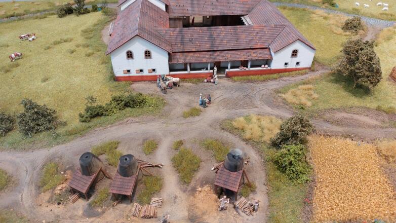 Funde von der Ausgrabung eines römischen Gutshofes in Königswiesen bei St. Georgen im Attergau, wie römische Münzen, Keramik, Alltagsgegenstände usw. sind zu sehen. Ein wunderbares Modell zeigt den römischen Gutshof.
