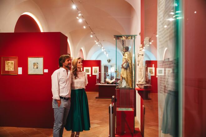 Wenn Museen keine toten Zeugen der Vergangenheit sind, sondern mit den spannenden Geschichten der Menschheit Abenteuer lebendig werden lassen, dann treten Kostbarkeiten von europäischem Rang in den Dialog. Mächtige Päpste und Kaiser erstehen zum Leben und wetteifern in ihren Erzählungen um die Gunst der Wissbegierigen der Gegenwart. Schätze aus aller Herren Länder berichten von der Frömmigkeit der Menschen, die sich den Herausforderungen ihrer Zeit zu stellen hatten. Große Kriege brachten unvorstellbares Unglück über die Völker, Seuchen suchten den Planeten heim, Entdeckungen schafften neue Horizonte und schließlich lässt die Kunst in ihren Höhepunkten eine Ode an das Leben erklingen. Von all diesen Stern- und Leidensstunden vergangener Epochen weiß das Museum im Stift St. Paul zu berichten. Kostbare Handschriften, die älteste aus dem 5. Jahrhundert, halten Szenen dieses Geschehens fest und dokumentierten das Ringen der Generationen um die Freiheit des Wissens und des Geistes. In ihnen liegt manches Geheimnis verborgen und harrt über Jahrhunderte seiner Entdeckung. Gold, Silber und Edelsteine sind nicht nur der Ausdruck des Wohlstandes, sondern auch der großen Achtung vor der Schöpfung. Pretiosen vom frühen Mittelalter bis zur Neuzeit schildern Aufstieg und Fall ganzer Dynastien, aber auch die Beständigkeit des klösterlichen Schatzhauses. Meisterwerke herausragender Künstler wie Dürer, Rubens, Rembrandt oder von Zeitgenossen wie Staudacher und Lüpertz treten in den Diskurs mit ihren Betrachtern. Neben dem Staunen vor dem Gestern mahnt das museale Universum zum Lernen für das Leben aus dem Leben.