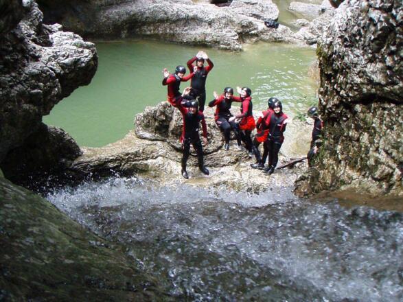 Gut verpackt im wärmenden Neoprenanzug "wandern" (schwimmen, klettern, springen, abseilen, rutschen) Sie mit einem staatlich geprüften Führer zwischen spektakulären Felsformationen und aufragenden Felswänden. Das Besondere sind die zahlreichen Sprünge aus unterschiedlichen Höhen, die wahlweise auch "abseilbar" sind.