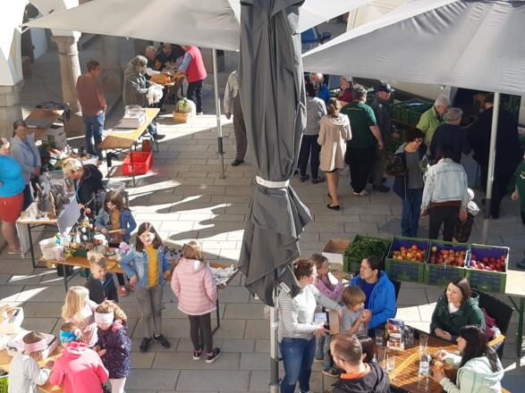 Der Gemüsestand bringt eine willkommene Abwechslung in den Arbeitsalltag der Werkstatt-Beschäftigten.