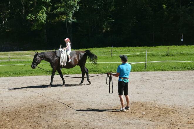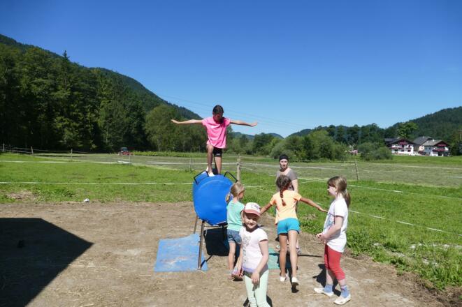 Spielerisches Herantasten an Pferd und Voltigiersport, mit Pferdepflege und einfachen Voltigierübungen.