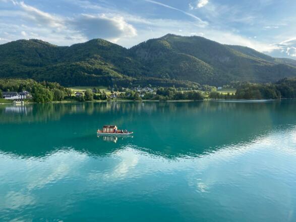 Die "Fuschlerin" - ein elektrisch betriebenes Holzboot, gleitet fast lautlos über den Fuschlsee. Abgelegt wird in Fuschl am See an der Seepromenade, angelegt auf der anderen Seeseite bei der Schlossfischerei, wo man köstliche Räucherfische sowie einen herrlichen Blick auf den Fuschlsee und das Schloss Fuschl genießen kann!
