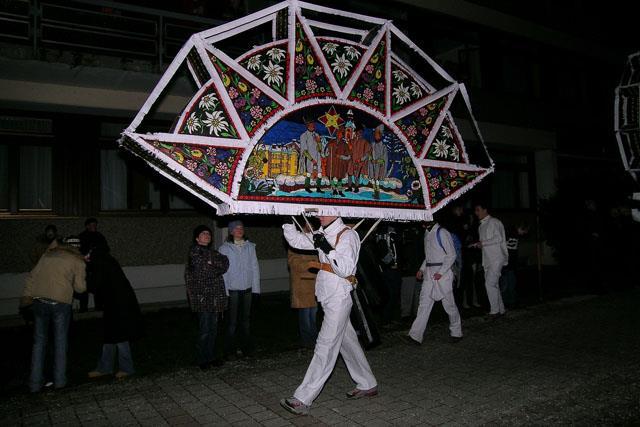 Účast v průvodu je pro zvoníky s čepci dost namáhavá, protože v čepci vážícím až 20 kg, vysokém až 2 m a dlouhém až 4 m musí projít celým městečkem. Aby byli zlí duchové opravdu zahnáni, mají zvoníci kolem těla přivázány velké zvonce, připevněné na kožených páscích, jejichž ponuré zvonění má přivábit světlo.