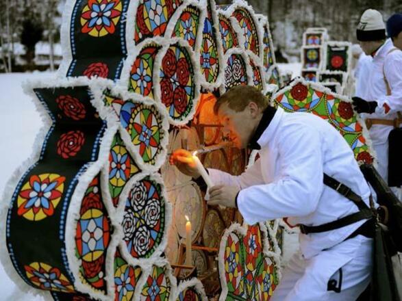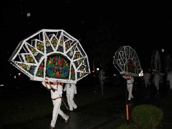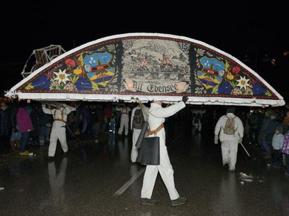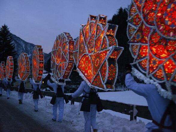 One of the most beautiful and eye-catching traditional events is the approximately 160-year-old Twelfth Night custom of the Ebensee Glöcklerlauf procession. Ebensee is the heart and the origin of this custom, leading it to win UNESCO Intangible Cultural Heritage status in 2010. The idea behind the Glöcklerlauf is to attract the blessings of good spirits and drive away evil ones. The Glöcklerpassen (teams taking part in the procession) meet between 6 and 7 p.m. in the centre of town and then make their way through Ebensee’s districts. The Glöckler wear headgear weighing up to 20 kg, plus large bells attached to leather belts. At 6 p.m. on the dot, a gun salute announces the start of the parade, which takes place whatever the weather. Those interested in how these artworks are made can visit the large Town Hall chamber on 5 January from 10 a.m. to 4:30 p.m. to see the headwear of some of the participants. Museum.Ebensee offers a permanent Glöckler headwear exhibition during opening hours.