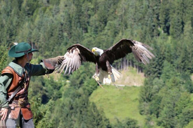Von 13. Juli bis 14. August 2026 finden die Flugvorführungen der Greifvögel 3x täglich statt!