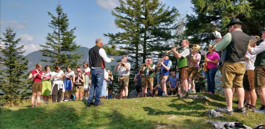 Bergmesse der Kameradschaft Hintersee am Gipfelkreuz des Feichtenstein. Bei Schlechtwetter in der Kirche.