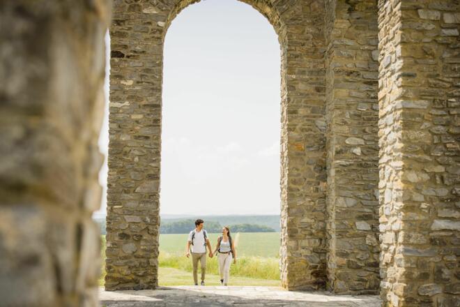 zum „Anschlussdenkmal“ und zur romanischen Kirche St. Bartholomäus. Historischer Spaziergang zum „Anschlussdenkmal“ Oberschützen, welches 1938/39 errichtet wurde und der größte derartige Bau in Österreich ist. Die zweite Station ist die mittelalterliche Friedhofskirche Oberschützen, die wertvolle Fresken aus dem 13. und 15. Jhdt. enthält.