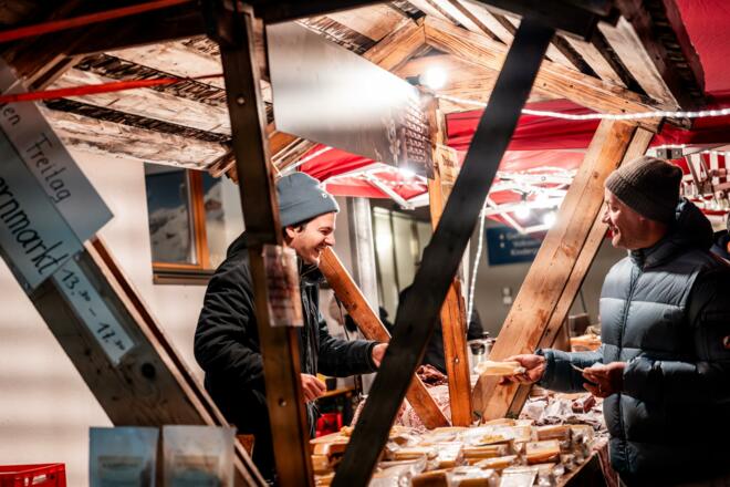 Nimm ein Stück Bregenzerwald mit nach Hause. Ob Käse, Würste, Schnaps oder ein guter Speck vom Bauern aus der Region – hier ist für jeden etwas dabei. Für musikalische Unterhaltung und dein leibliches Wohl vor Ort ist mit Raclette und Glühmost bestens gesorgt.