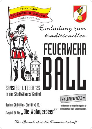 Einladung zum traditionellen Feuerwehrball der Freiwilligen Feuerwehr Gmünd.