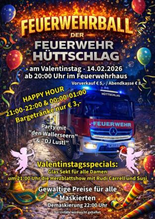 Am Valentinstag lädt die Feuerwehr Hüttschlag herzlich zum Feuerwehrball ein!