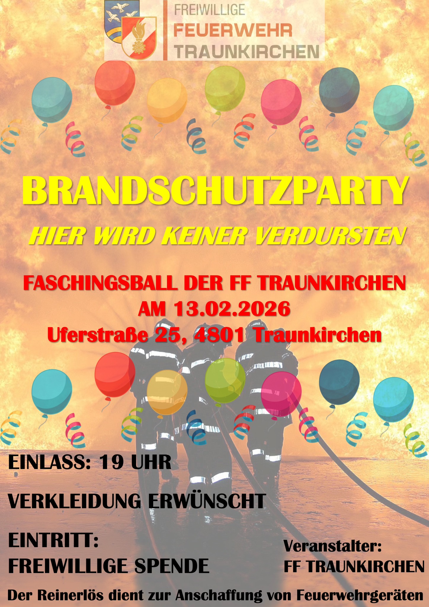 Wir freuen uns euch beim FASCHINGSBALL der FF Traunkirchen am 13.02.2026 begrüßen zu dürfen.