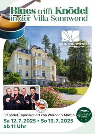 Eine Mischung aus Musik und Kulinarik findet am 12.-13.7.2025 in der Villa Sonnwend statt. Es werden 8 verschiedene Knödel-Tapas serviert, die vom Chef-Knödeldreher Dilly Werner von der Knödelwerkstatt und Martin Heidlmair von der Villa Sonnwend entwickelt wurden. Die DOWNTOWN PLAYBOYSz unterhalten euch mit einem Alpenblues auf österreichisch.
