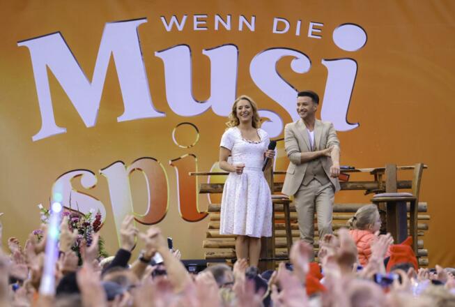 Marko Ventre und Stefanie Hertel führen die Fans vor Ort und die Millionen Zuseher