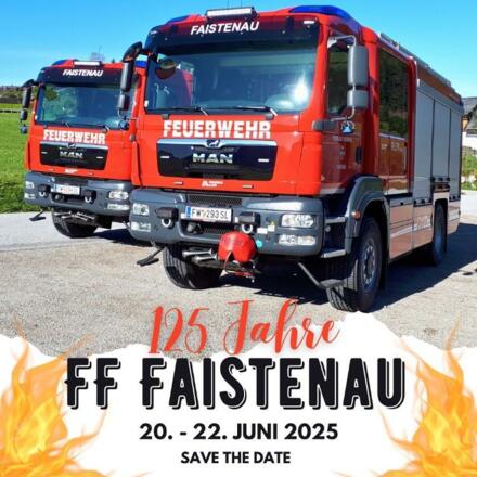 Die Freiwillige Feuerwehr Faistenau feiert vom 20. - 22. Juni ihr 125 jähriges Bestehen und lädt ein, am großen Jubiläumsfest teilzunehmen.