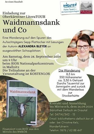 Einladung zur Oberkärntner LiteraTOUR Waidmannsdank und Co