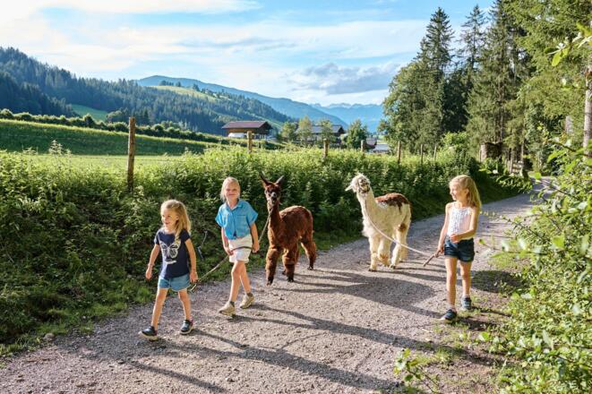 Alpakas sind gesellige und sanftmütige Tiere und inzwischen auch bei uns auf vielen Höfen zuhause. Ihre Nähe wirkt sehr beruhigend auf den Menschen. Und überhaupt löst das Alpaka mit seinem Wuschelkopf und seiner sympathischen Art große Faszination aus. Mit Fionas Alpakas spazieren Sie gemeinsam gemütlich am Schlatterberg in Altenmarkt.