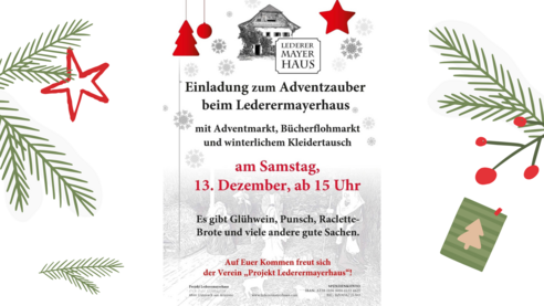 Der Verein „Projekt Lederermayerhaus“ lädt zum fröhlichen Beisammensein ein. Es gibt Glühwein, Punsch etc. sowie Raclette-Brote und andere kulinarische Kleinigkeiten.