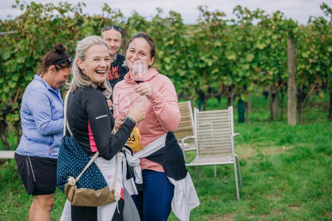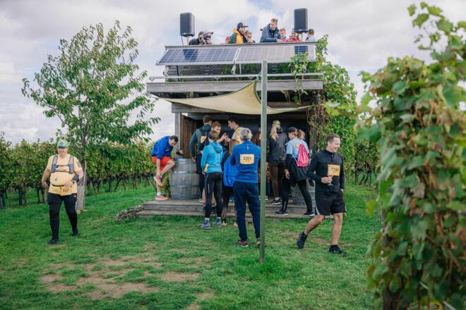 - Weinproben und kulinarische Schmankerl für alle Teilnehmer:innen an den Genussstationen, Wasser und ISO an den Labestationen
