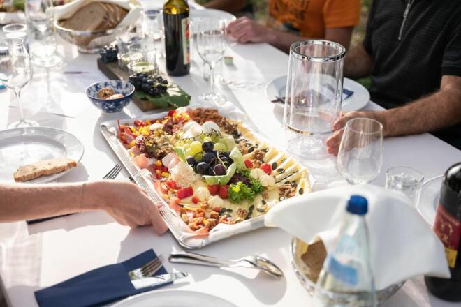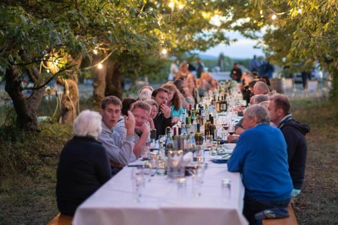 Inmitten der wunderschönen Atmosphäre des Lutzmannsburger Weingebirges stehen für die Gäste auf den Tischen Weine der Lutzmannsburger Winzer:innen sowie regionale Köstlichkeiten bereit.