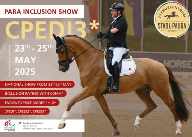 Inklusion, Gemeinschaft und Zusammenhalt – der Para-Sport ist etwas ganz Besonderes und aus diesem Grund freut sich das Pferdezentrum über die Austragung des CPEDI3* von 23. - 25.05.2025. Es sind zahlreiche europäische Para-Reiter/innen angemeldet und auch von Mexico, Saudi-Arabien und der USA gibt es Nennungen. Rund 300 Pferde reisen bei dem internationalen und dem parallel laufenden nationalen Dressurturnier nach Stadl-Paura.