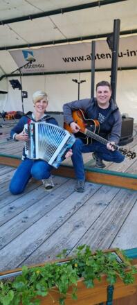Der Marktplatz wird zur Tanzfläche. Es spielt die Gruppe "Irmgard & Daniel".