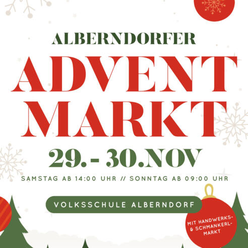Der Tourismusverein Alberndorf lädt ein zum Alberndorfer Adventmarkt am ersten Adventwochenende. Am Samstag, den 29. November, ab 14:00 Uhr und am Sonntag, den 30. November, ab 9:00 Uhr bieten zahlreiche Aussteller ihre Produkte zum Verkauf an.