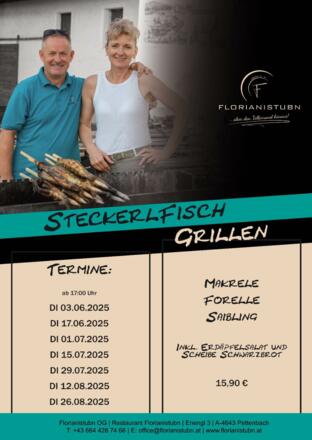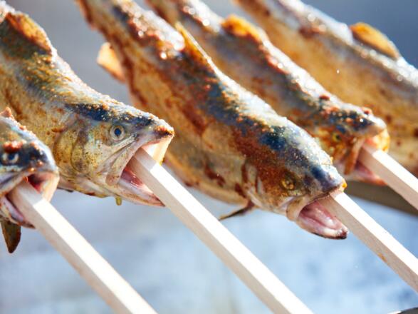 Jeden zweiten Dienstag gibt's in der Florianistubn im Almtal Camp frischen Steckerlfisch.