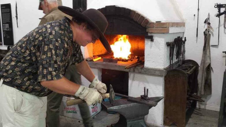 Schauschmieden, bei dem geschickte Besucher auch gerne selbst ein einfaches Werkstück machen dürfen.