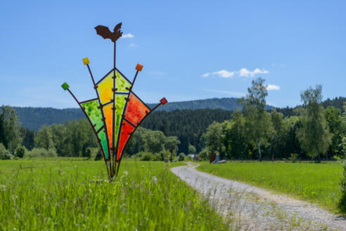 In Rinchnach gibt es den einzigartigen Fledermaus-Skulpturenweg mit Fledermaus-Waldspielplatz und -Fledermauslehrpfad. Über Feuchtgebiete/Biotope am Bach führen zwei Bohlenwege! Der Leiter des Tourimusbüros infomiert über das Fledermaus-Areal und über Heilkräuter am Wegesrand.