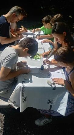 Mit mystischen Baumgeschichten und spannenden Rätseln entlang einer Teilstrecke des Kraft-der-Bäume-Lehrpfades, begeistert Christine Höller viele Familien. Es wird am Rastplatz mit selbst hergestellter Eichengallentinte und Feder gemalt. Im Baum-Infostadl, wo die Tour endet, werden Waldkekse verkostet. Jeder junge Teilnehmer erhält ein Baumamulett als Erinnerung an den spannenden Tag.