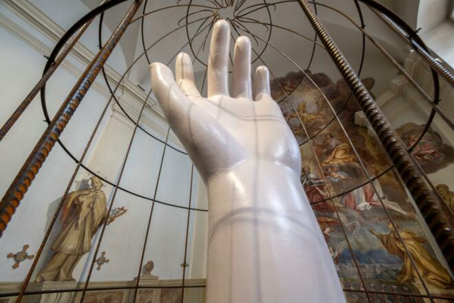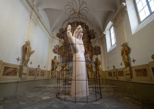 Eine über vier Meter hohe Kinderhand, gefertigt im 3D-Druck, steht symbolisch für Zerbrechlichkeit und Unschuld. Eingeschlossen in einen sieben Meter hohen Käfig aus Torstahl, entsteht ein Spannungsfeld zwischen Schutz, Macht und gesellschaftlicher Verurteilung.