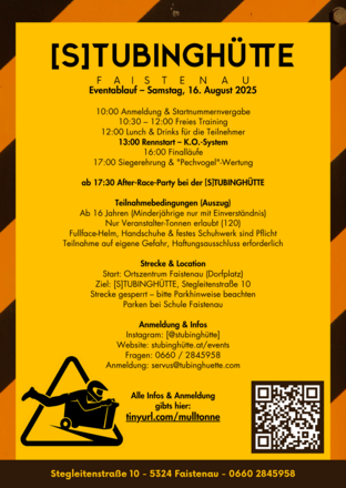 Start ist im Dorfzentrum ab 13 Uhr - ab 17 Uhr Preisverleihung und After-Race-Party bei der [S]Tubinghütte.